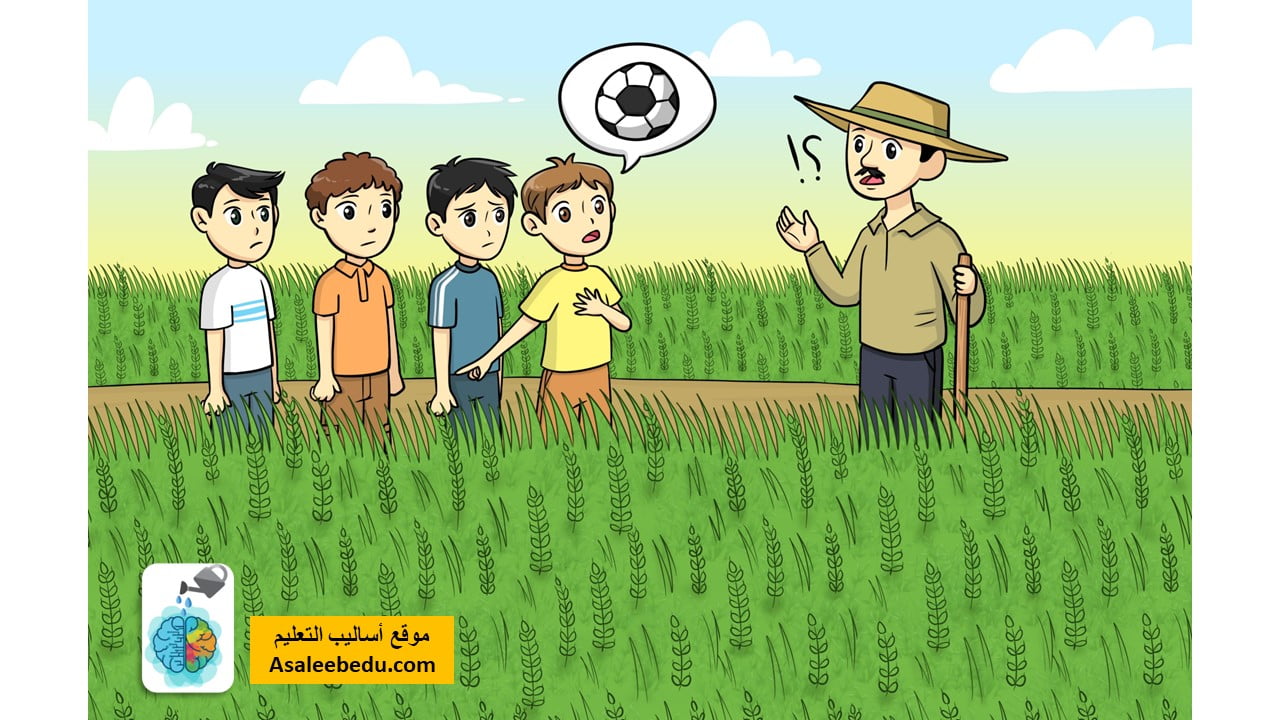 وَبَعَدَ قَليلٍ.. ظَهَرَتْ كُرَةُ (سعيد) في الْجِهَةِ الْغَرْبِيَّةِ مِن الْحَقْلِ، سارَ الْمُزارِعُ بِجِوارِ الْحَقْلِ إِلى أَنْ وَصَلَ الْجِهَةَ الْغَرْبِيَّةَ، فَدَخَلَ الْحَقْلَ، وَأَخْرَجَ الْكُرَةَ، وَأَرْجَعَها لِــ (سعيد).